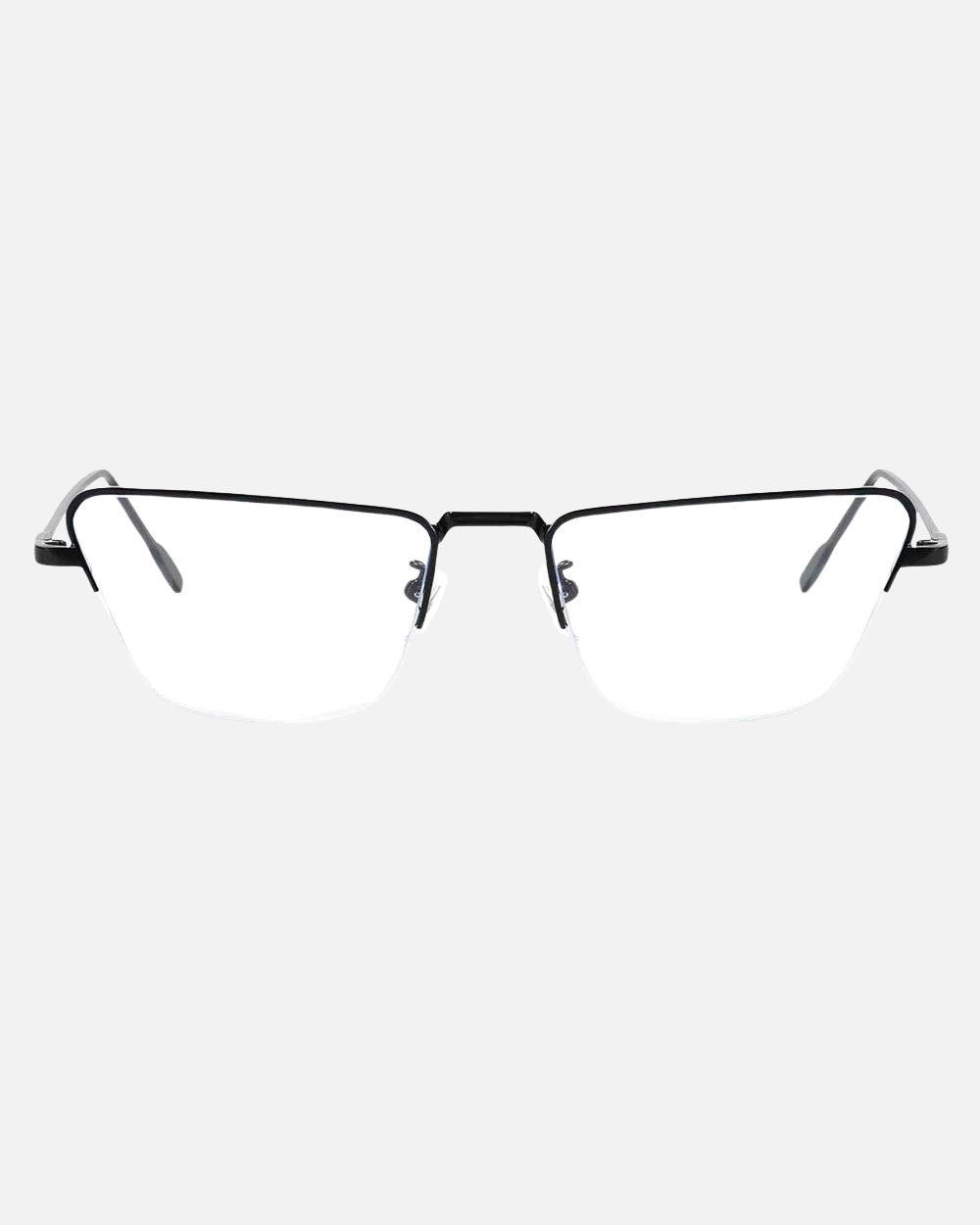 Aston Blue Light Glasses feature a lightweight half-rim metal frame in a rectangular cat-eye shape, and adjustable nose pads for extended comfort. Opt for classic black or luxurious gold to add a sophisticated touch to your everyday look.