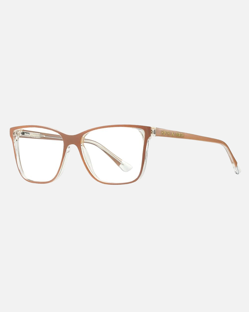 Kaya Blue Light Blocking Glasses combine style and function with their trendy square frame, designed to complement any outfit. Crafted in neutral tones with clear accents, these glasses offer a modern, sophisticated look that suits both professional and casual settings.