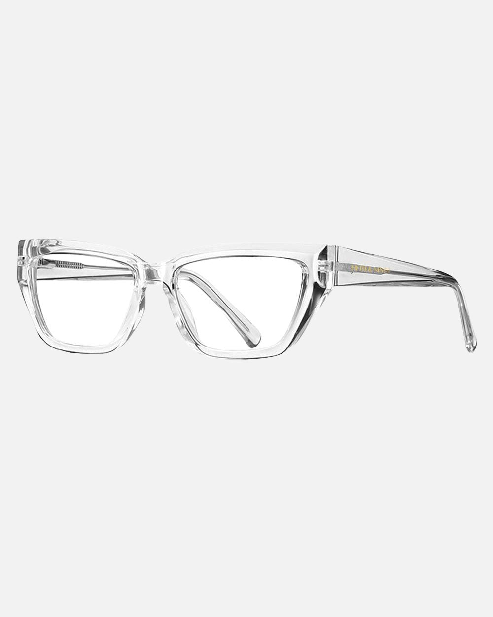 Introducing Maya blue light blocking glasses, where geometric design meets modern utility. These striking frames offer a bold yet refined look, available in sleek black or crystal-clear options. Maya blends fashion with function to provide stylish protection from harmful blue light. Elevate your eyewear game and safeguard your eyes with Maya blue light blocking glasses.