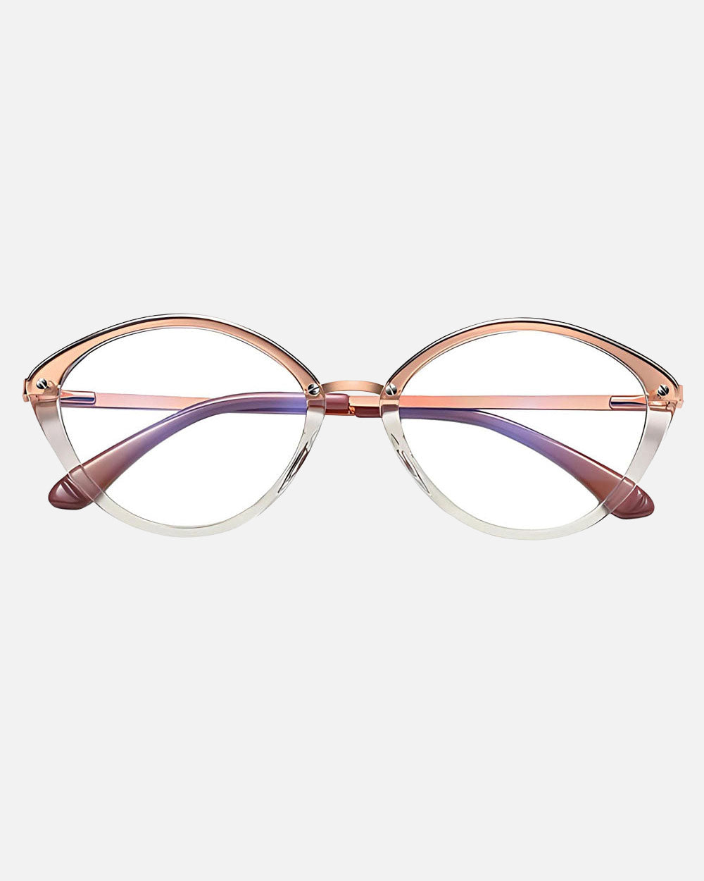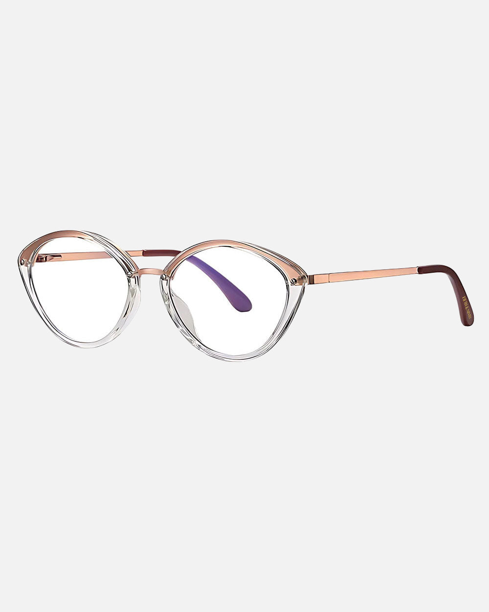 Posie blue light glasses are a trendy twist on the classic cat-eye. With its rounded silhouette, metal arms, and rubberized ear tips, these glasses offer a sleek and modern look that’s both stylish and comfortable. Perfect for those who love a little extra flair.