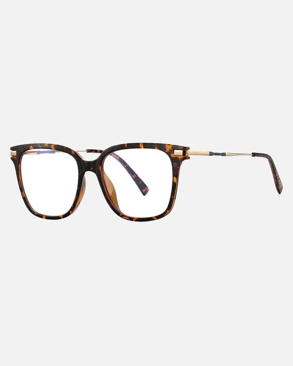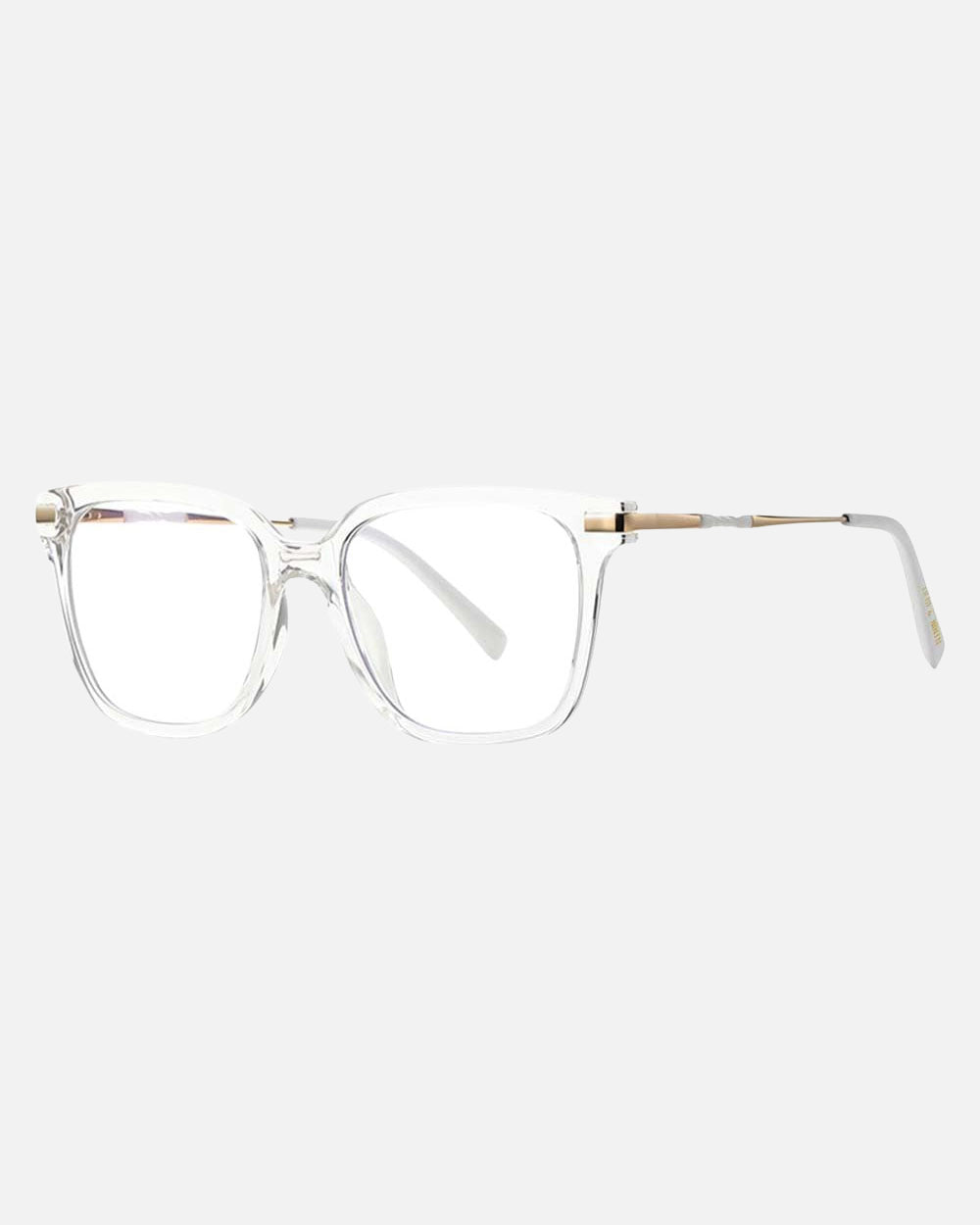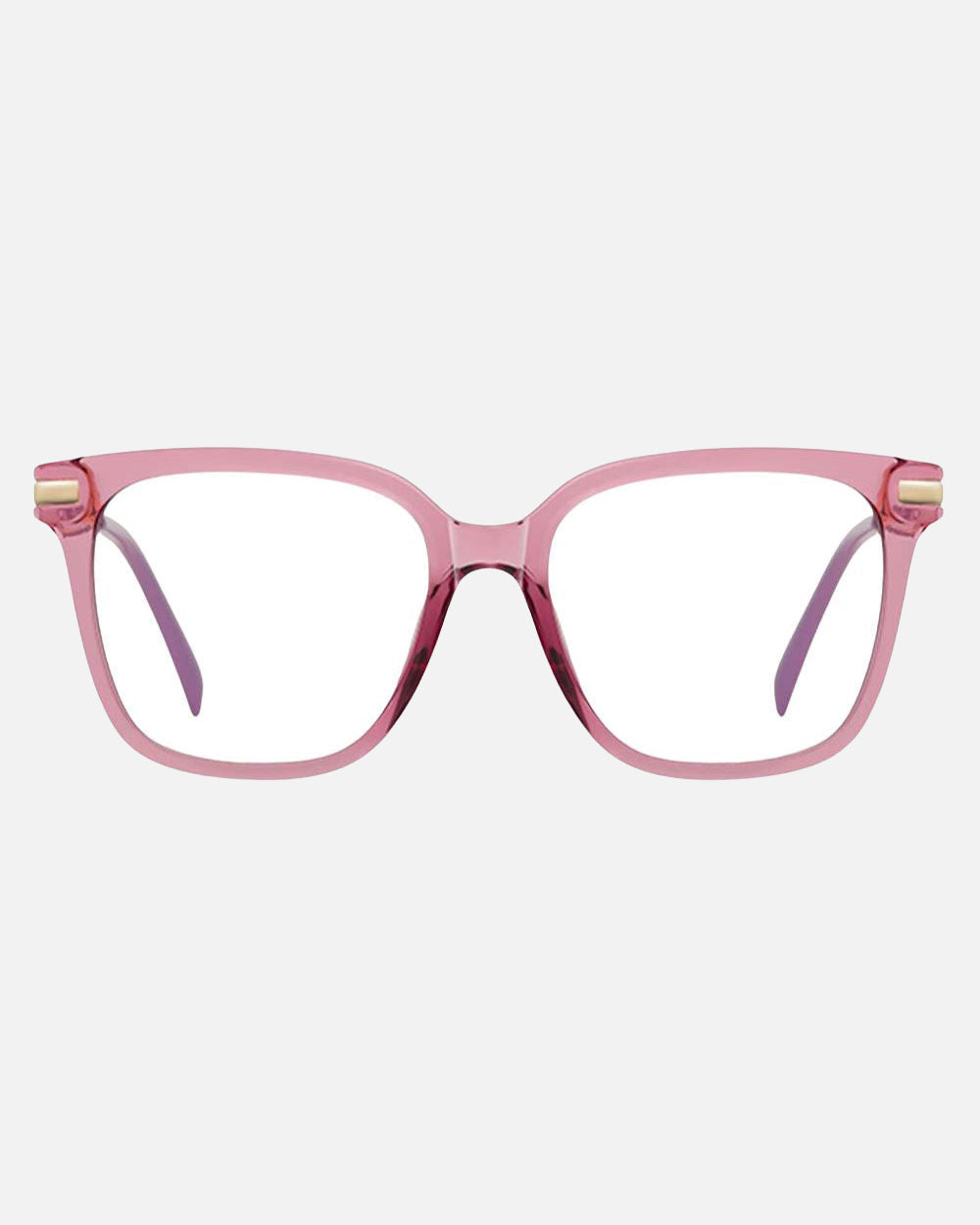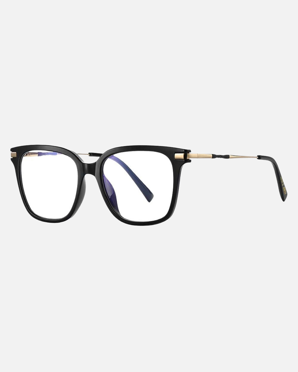 Yara Blue Light Glasses feature a unisex square frame with a charming twist accent in the frame's color. These glasses strike the perfect balance between fashion and functionality. The blend of gold metal arms and resilient temple tips harmonizes with the frame's front, while the flexible hinges accommodate wider faces. Available in black, torte, transparent bubblegum pink, and clear, Yara offers both style and comfort for everyday wear.